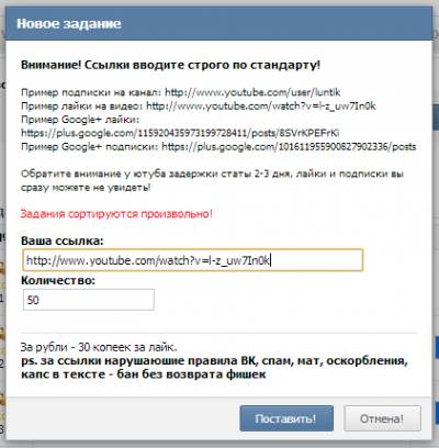 Возвращаемся на vprka.com, идём на вкладку YouTube и добавляем задание.